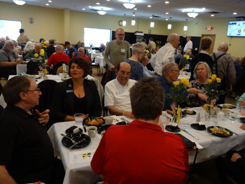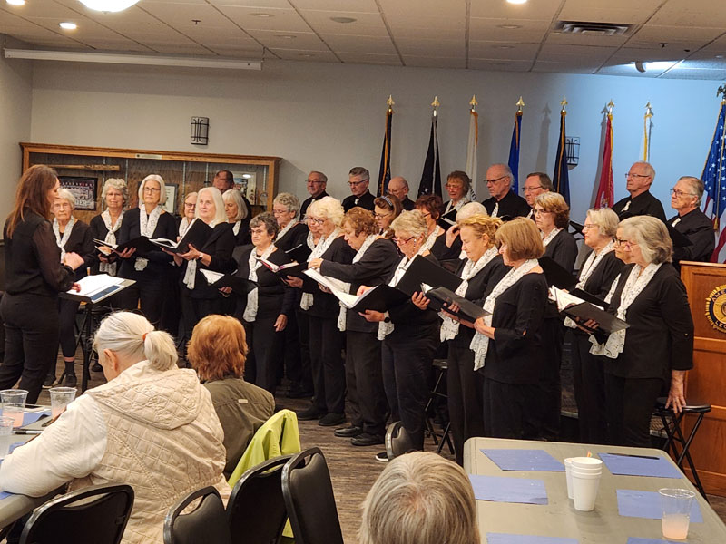 At our November dinner we were honored to have the Velvet Tones Choir, a community choral group of senior adults who have been making music together for over 20 years. They sang many fan favorites including the theme song for each military branch. A member of the Velvet Tones is Tom Werner from our own Beyond the Yellow Ribbon chapter.
